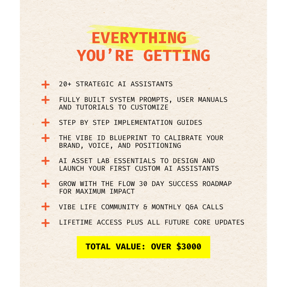 Each Assistant outlines the minimum information required to function. In most cases, your Vibe ID Blueprint (included in this system) and a few examples are enough to get started. The system is designed to grow with you.